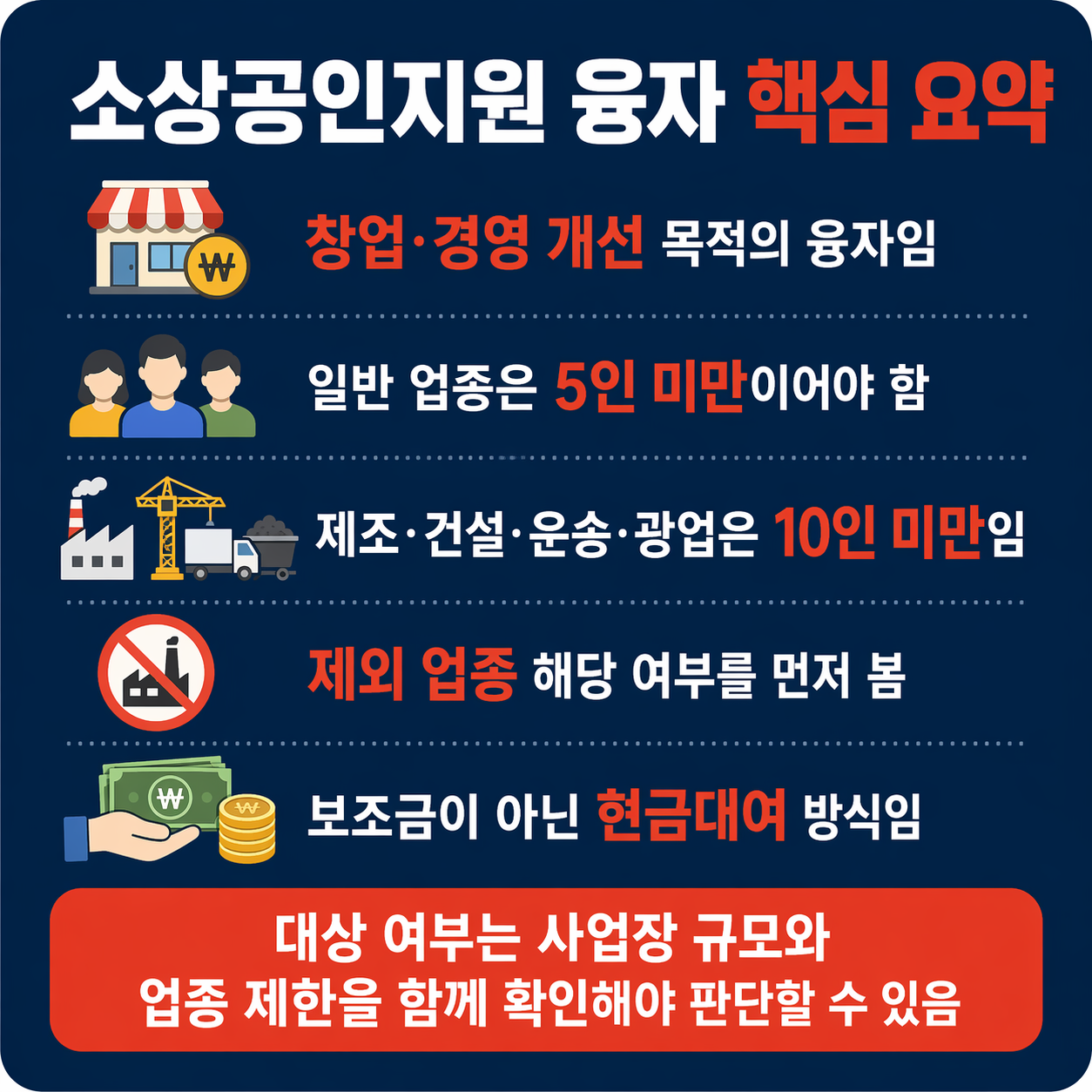 경고 소상공인이라고 해서 모든 업종이 융자 대상이 되는 것은 아닙니다. ⚠️